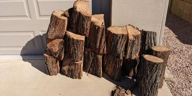 Wood can be purchased, found, cut down, obtained from friends or neighbors, etc. This tree pictured above was a 35+ year old mesquite that was being removed by its owner who allowed me to have some. I have since made some items for her and will make more in the future for her.
