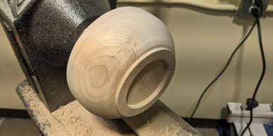 They are all created on a wood lathe, a machine that spins a blank (a chunk of wood) and then excess wood is removed using gouges and carbide bits until all that remains is the desired item. Michanlanglio is quoted as saying about sculpting "Every block of stone has a statue inside it and it is the task of the sculptor to discover it." Woodturning is the same thing except that wood is our medium.