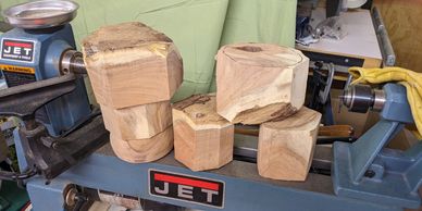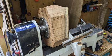 Wood lathes come in various sizes so now you need to reduce the timber to a size that your machine can handle. This is normally done on a bandsaw, but with experience can also be done with a chainsaw. The goal is to make a round item small enough for your machine to handle.